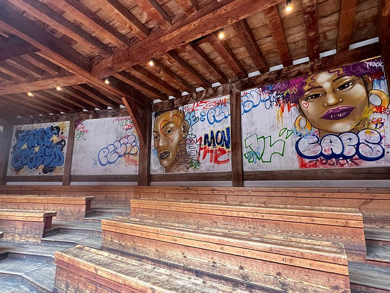 “When you think of graffiti, you will probably think of swear words of racist comments. I have taken this idea and put it in the sense of Romeo and Juliet’s time. The phrase ‘Biting your thumb’ is an action worse than the middle finger, and I thought that would be a unique phrase to base my graffiti art on.”